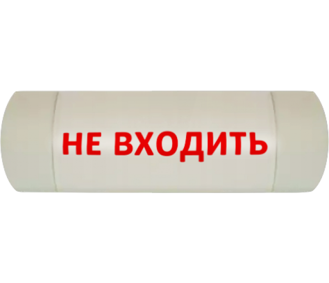 "НЕ ВХОДИТЬ" красным шрифтом на белом фоне, в выключенном состоянии лампа белого цвета.