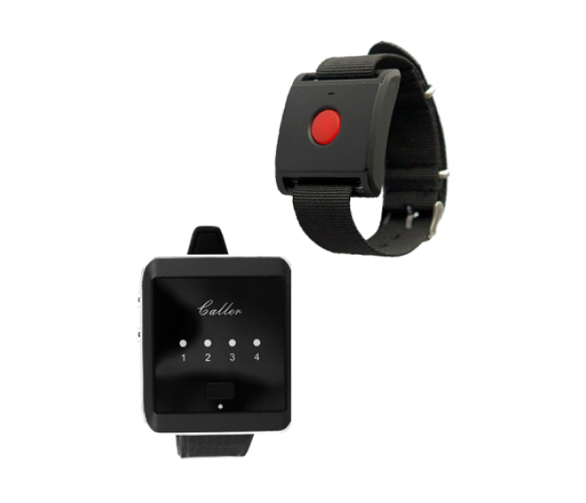 Пейджер легко программируется по инструкции. Кнопка вызова выполнена в виде наручного браслета.