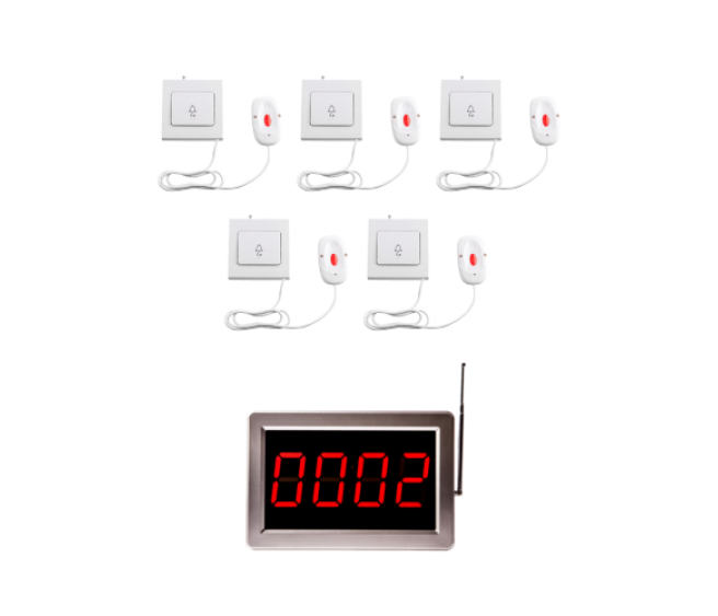 Комплект системы вызова медперсонала включает в себя: табло вызова Med 46S и 5 кнопок вызова Med 1S